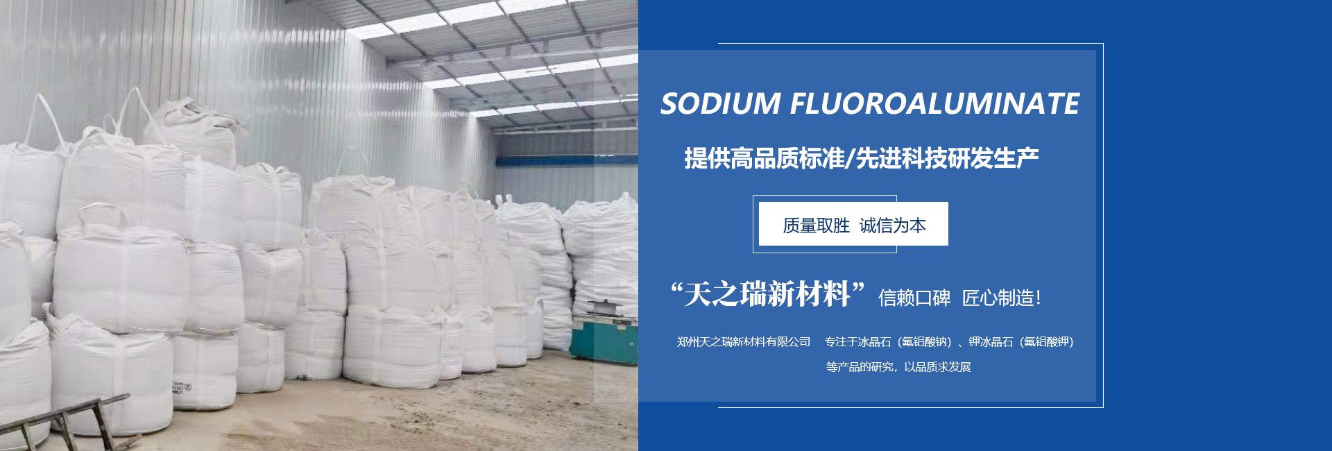 鄭州天之瑞新材料有限公司 鄭州天之瑞新材料有限公司位于河南省民營(yíng)科技園(鞏義),坐落于伊洛河畔,是河洛文化的重要發(fā)源地,隴海鐵路,連霍高速,鄭西高鐵均在此設(shè)站,地理位置優(yōu)越,交通方便,十分便利。 公司建于2014年,前身為鄭州天瑞晶??萍加邢薰?,資產(chǎn)實(shí)力雄厚,科技含量高,是集科研、開(kāi)發(fā)、生產(chǎn)、銷(xiāo)售服務(wù)一體化的冰晶石生產(chǎn)企業(yè)。公司主營(yíng):冰晶石,再生冰晶石,鈉冰晶石,氟鋁酸鈉,六氟鋁酸鈉,氟鋁酸鉀,鉀冰晶石。其產(chǎn)品在電解鋁行業(yè)、鐵含量及沸騰鋼、鑄造業(yè)、研磨行業(yè)及農(nóng)藥行業(yè)等不同領(lǐng)域廣泛使用。 公司秉承“以人為本,誠(chéng)信立業(yè),科技創(chuàng)新”的企業(yè)精神,堅(jiān)持“顧客至上”的營(yíng)銷(xiāo)方針,竭誠(chéng)為全國(guó)用戶(hù)提供服務(wù)。 熱忱歡迎各界朋友來(lái)公司洽談業(yè)務(wù),天之瑞期待與您的合作。 |