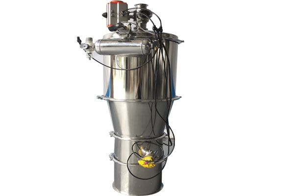 采用真空泵等裝置產(chǎn)生的負(fù)壓氣流,將物料從進(jìn)料口吸入,在真空上料機(jī)內(nèi)氣物分離。干凈的空氣通過(guò)濾芯,經(jīng)過(guò)真空泵排放到大氣中,物料被分離落入料倉(cāng)。等上料時(shí)間到達(dá),真空閥關(guān)閉,下料閥打開(kāi),物料落入指定設(shè)備,反吹氣囊自動(dòng)清洗濾芯,確保下個(gè)循環(huán)高效發(fā)揮。震動(dòng)等輔助下料裝置啟動(dòng),輔助下料。下料結(jié)束再次進(jìn)入吸料狀態(tài)。