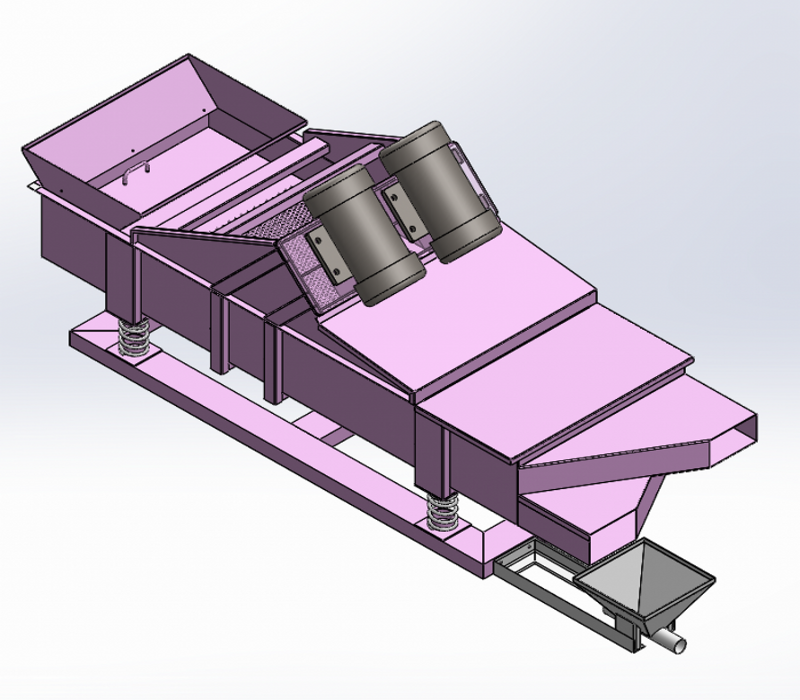 直線振動(dòng)篩利用振動(dòng)電機(jī)激振作為振動(dòng)源,通過多層篩網(wǎng)產(chǎn)生數(shù)種規(guī)格的篩上物、篩下物、分別從各自的出口排出。具有耗能低、產(chǎn)量高、結(jié)構(gòu)簡單、易維修、全封閉結(jié)構(gòu),無粉塵溢散,自動(dòng)排料,更適合于流水線作業(yè)